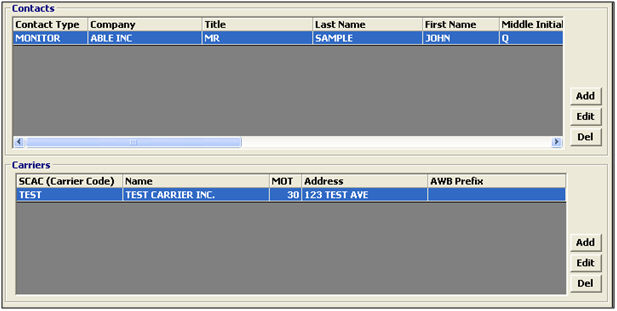 Click to edit the selected contact/carrier. This will open the selected item in the applicable screen. |