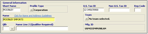 The MID identifies the manufacturer or shipper for customs purposes. This will auto-generate as you enter the name and address information for the profile. |
