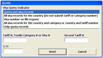 Use QTA to query the quota file for a specific country, tariff number, category, and/or visa requirements