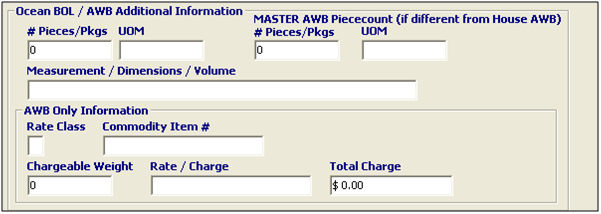 This will auto-calculate the total charge for this line item on the air waybill, from the chargeable weight and the rate/charge listed in the previous fields. |
