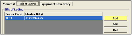 Click to add a bill of lading. This will open the Bill of Lading screen, where you can enter this bill of lading information. |