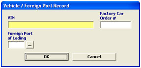Click OK to save this vehicle record and return to the equipment record screen. Click Cancel to exit without saving. |