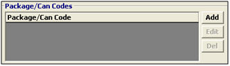 Click edit to edit the selected package/can code, or click del to delete the code. |