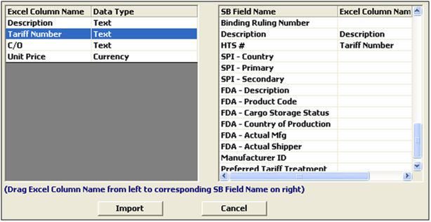 For example, you’ll see that the column for Tariff Number was associated to the HTS # field