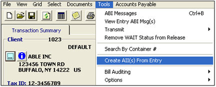 Click Tools, Create AII(s) From Entry from the main Transaction screen