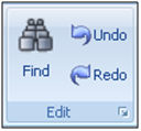 Click to find specific data within the current file. This will open the find window, which you can enter the desired word(s) to be located within the file. You can also use Ctrl + F to perform this function. |