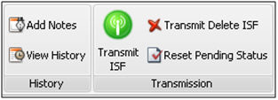 The ISF History and Transmission Options are used to communicate data within the CustomsNow ISF application. The main function of these options is the transmit function, which is used to transmit filings to CBP. The History functions can be used to modify and view the history of the current file.