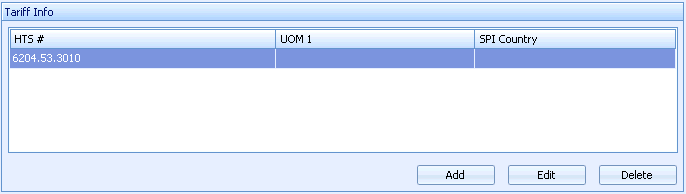 Enter the HTS code that represents the tariff number. Only the first six digits of the code are mandatory; 8-digit and 10-digit Harmonized Tariff Schedule codes are optional. |